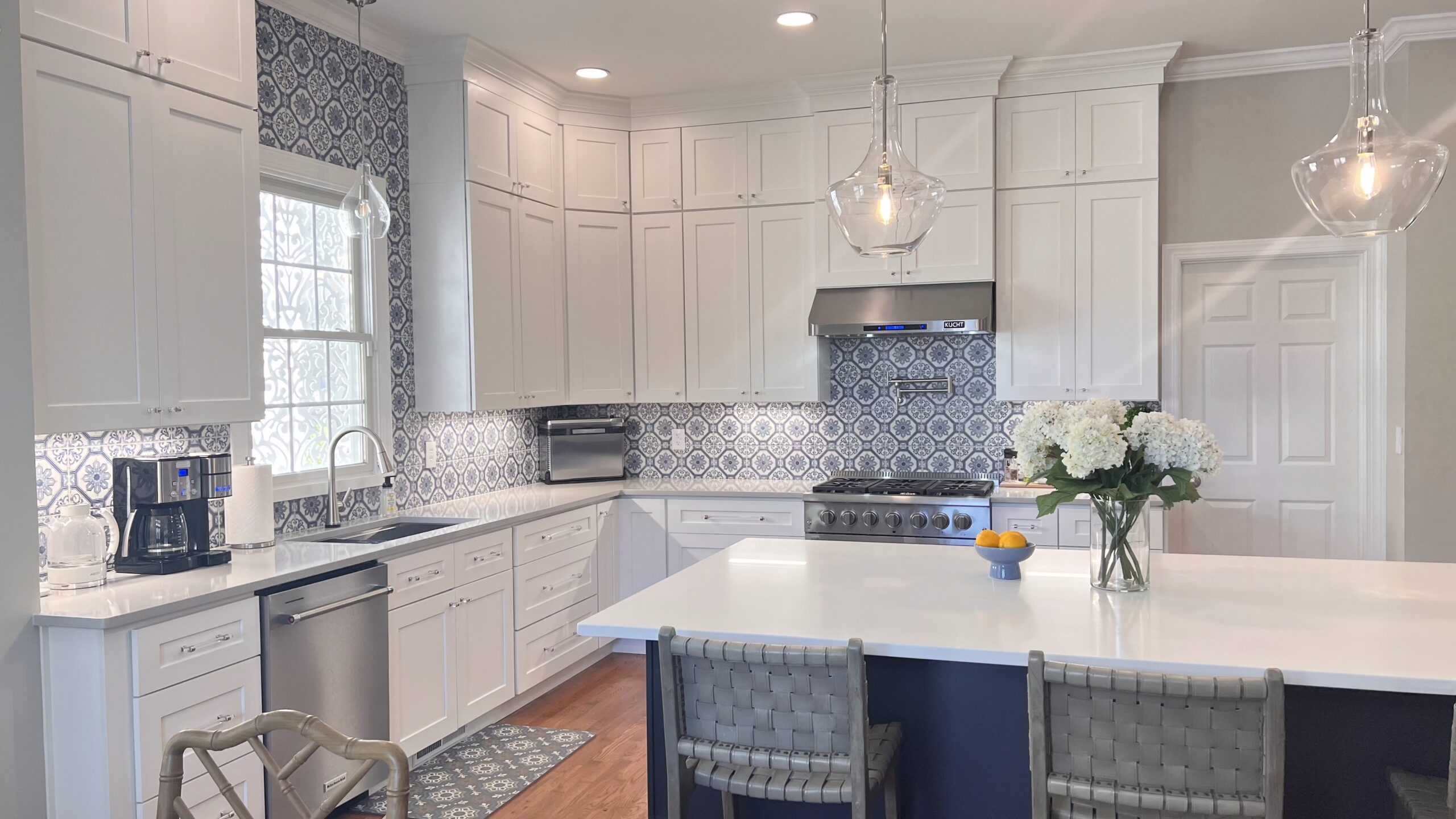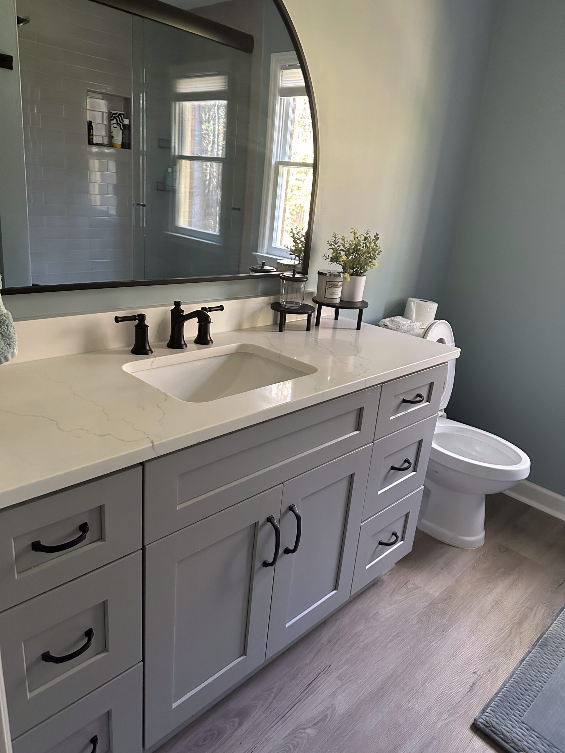 Full kitchen renovation with coordinated cabinetry across three bathrooms throughout the home.